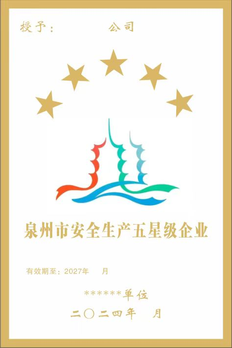 永春县企业安全生产星级牌匾(参考)