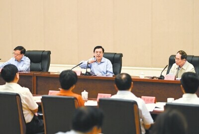 (5月21日,张德江在福建省上杭县出席指导县委常委班子专题民主生活会。新华社记者李学仁 摄)