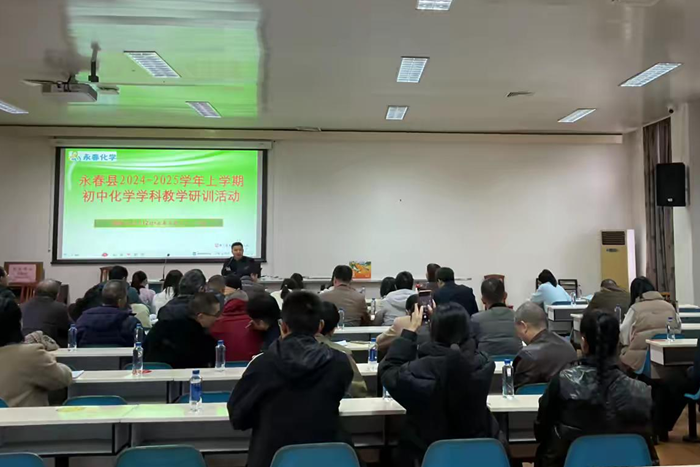 2024年12月12日上午,我县举行2024-2025学年上学期初中化学教学研训活动,全体初三化学任课教师、化学实验员参加活动。