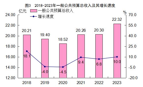 全年全县一般公共预算总收入为22.32亿元,比上年增长10.0%。一般公共预算收入15.14亿元,比上年增长9.4%。全年实现一般公共预算支出39.33亿元,比上年增长8.9%。其中,涉及民生保障支出的教育、科学技术、文化旅游体育和传媒、社会保障和就业、卫生健康、节能环保、城乡社区事务、农林水事务、交通运输、商业服务业、自然资源海洋气象、住房保障和粮油物资储备支出31.52亿元,增长8.5%,占一般公共预算支出的80.1%。政府性基金预算收入6.10亿元,政府性基金预算支出14.68亿元。