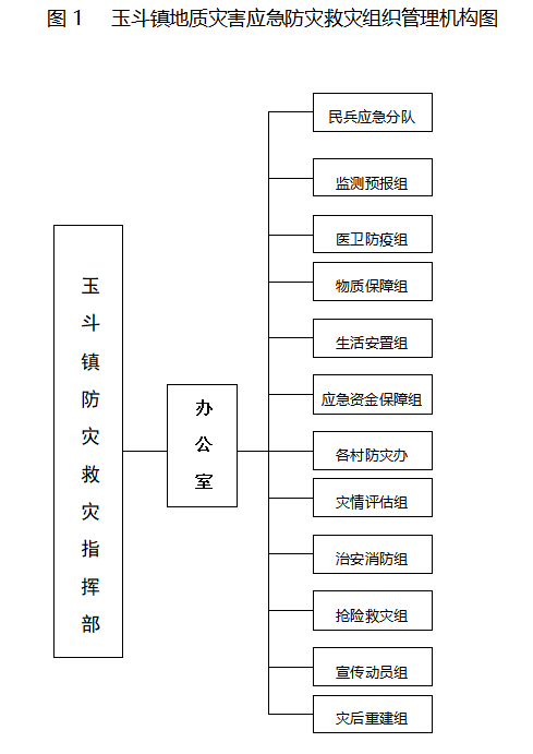 镇地质灾害防治应急指挥部下设办公室,挂靠玉斗自然资源所,办公室主任由玉斗自然资源所王智强担任,人员由玉斗自然资源所及镇村镇站、林业站、水利站等人员组成。